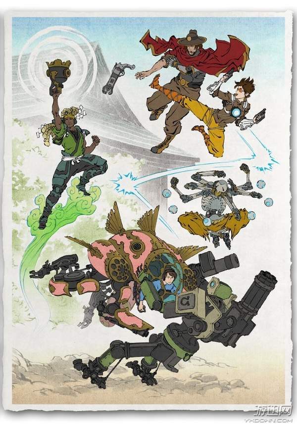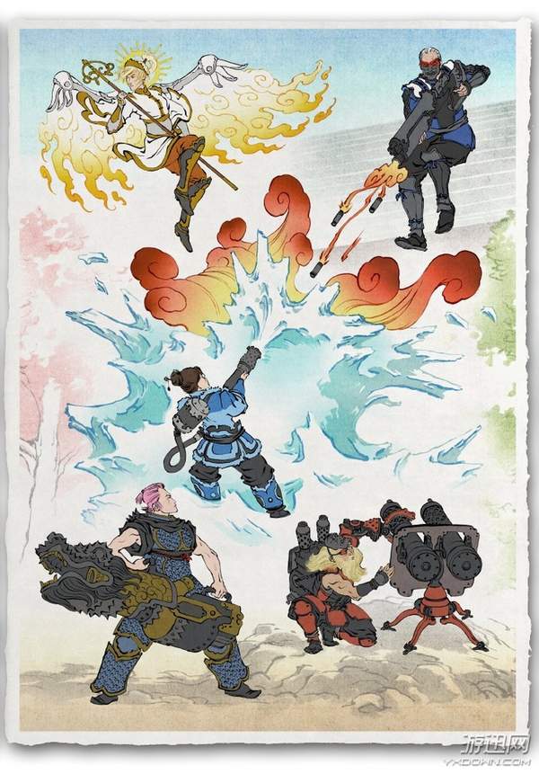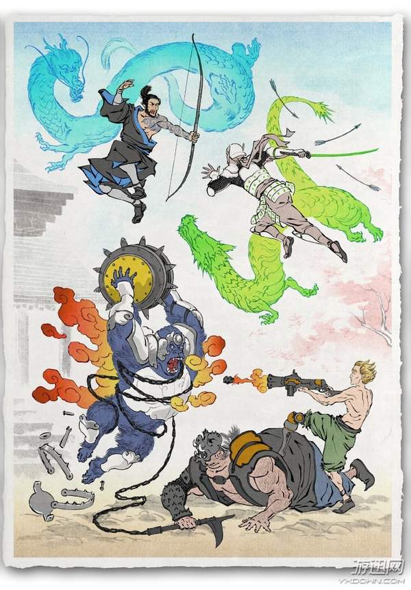 日前,浮世绘作家Jed Henry和他的团队,在其系列图集主页《Ukiyo-e Heroes(浮世绘英雄)》中更新了一套刚完成的作品,他们用浮世绘的技法绘制了《守望先锋》英雄艺术图,手法独具一格,犹如寺庙中的壁画。