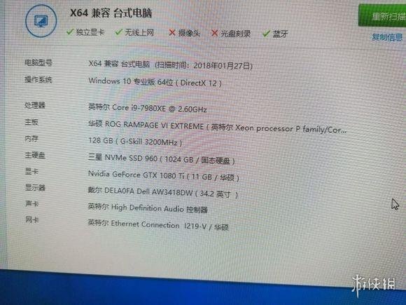 首先处理器使用的是最新的也是现在市场上心梗最强的I9顶级处理器,光是这一个CPU的价格就相当于我们平常的一部高配电脑了,内存是128GB,在内存价格飞涨的今天,确实价格不菲,1GB的三星固态硬盘,使用的是双路的GTX1080ti顶级的显卡,34.2寸的宽屏显示器,海盗船顶级机箱,并且说自己的这台电脑价格将近10万元,各位懂硬件的大神们来看看这部电脑花了10万元是赚了还是亏了?