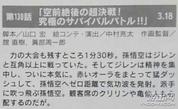 由于3月11日的马拉松转播影响,《龙珠:超》动画第130话《空前绝后的超决战!究极的生存战斗!!》将延期至3月18日放送。本集中,力之大会距离结束还剩下1分30秒,悟空与吉连的战斗不分上下。