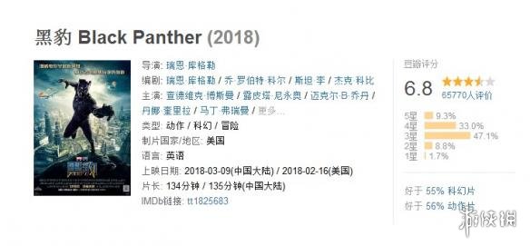 目前《黑豹》在豆瓣的评分依旧为6.8分。