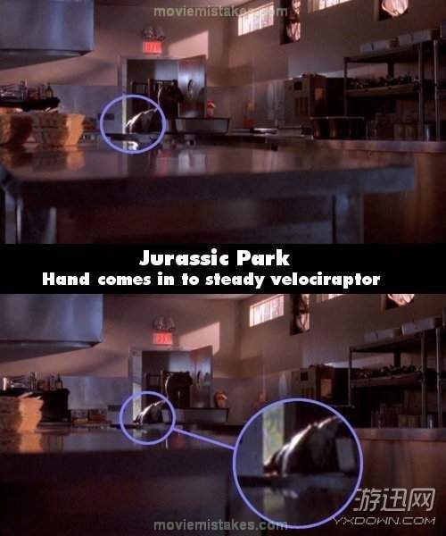 《侏罗纪公园》里迅猛龙跑进厨房时~有人看到了恐龙身上有手手~(我是看不出来啦囧)