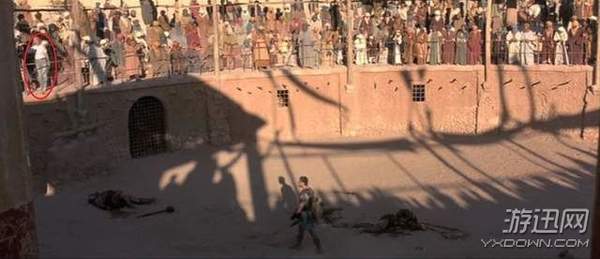 《角斗士》的观众中出现了一个穿着T恤牛仔裤的工作人员