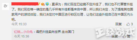 也有玩家嘲讽蓝洞:官方真是说话说得“清新脱俗”,明着说为了优化网络环境,暗地里是为了隔离中国开挂玩家(蓝洞曾表示,开挂的绝大部分都是中国玩家)。 蓝洞这一招挺高明,在不得罪中国玩家的基础上,又将外挂给隔离了。
