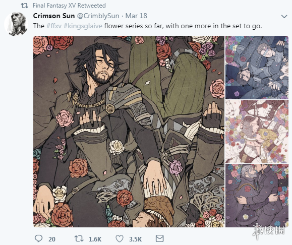 日前,《最终幻想15(Final Fantasy XV)》官方给我们分享了一组玩家Crimson Sun的《最终幻想15》鲜花系列插画。