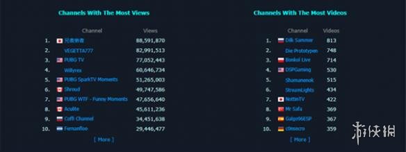 目前,YouTube上播放量最多的频道是日本的“兄者弟者”,其总播放量已经达到了8800万,前CSGO职业选手Shroud的个人频道有着近五千万的播放量,在该榜单中排名第六。