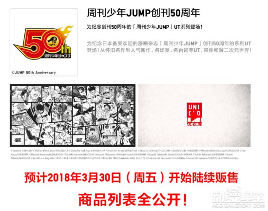 《JUMP》50周年联动优衣库推出的联动T恤将于4月在国内发售,很多小伙伴们都跃跃欲试想要抢到自己心仪的图案。今天(3月23日)优衣库公开了纪念《周刊少年Jump》创刊50周年内地贩售的UT款式T恤,并且宣布将于3月30日陆续开始限量抢先售卖部分款式的T恤,全部商品将于4月23日在全部门店发售。