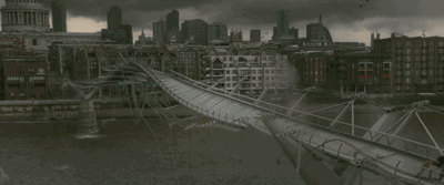 画面中纽特的老邓所站立的地方,是伦敦圣保罗大教堂的屋顶。这里是伦敦的宗教中心,也是泰晤士河旁最繁华的区域。与圣保罗大教堂正对的,是伦敦的千禧桥。如果你还想不起来这是哪里的话,我想下面这个画面一定能唤起你的回忆。