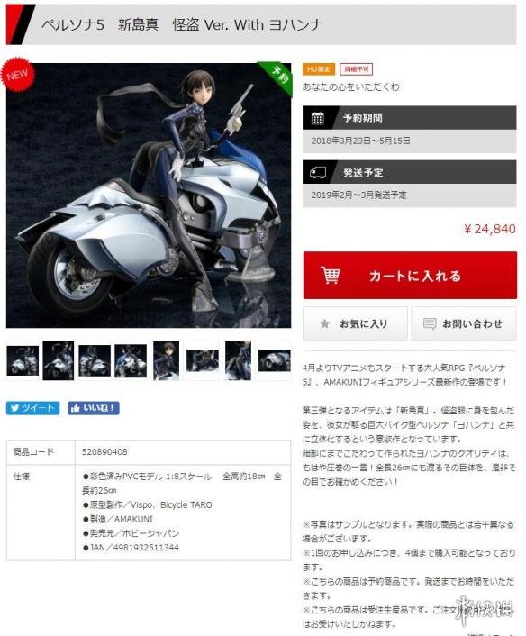 这款手办完美地呈现了“铁拳正妻”新岛真的怪盗造型,怪盗服+摩托的组合帅气拉风又非常性感。这款手办的定价24840日元(约合人民币1495元),2018年3月23日~5月15日期间都可进行预约,预定于明年2-3月发售。