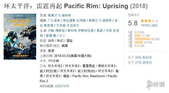 今日中午,环太平洋系列电影官微公布消息《环太平洋2》票房在今(24)日中午12点18分43秒突破2亿大关。豆瓣评分跌至5.8分。
