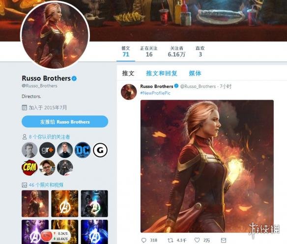 《复仇者联盟3》导演罗素兄弟不仅转发了这张惊奇队长的美图,还把头像都换成了这张图片,到底什么时候粉丝熟悉的惊奇队长造型才会在电影中出现呢?让我们拭目以待吧。