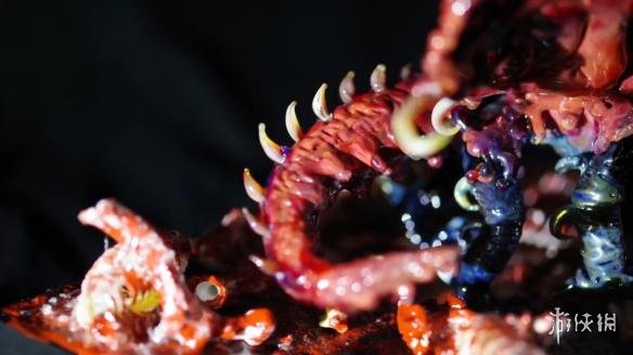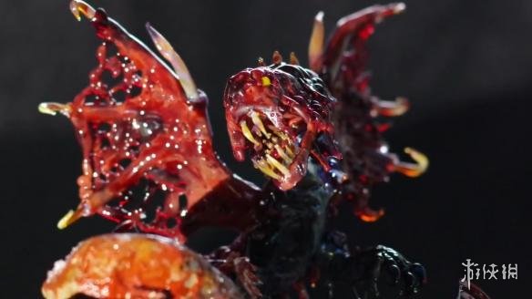 在视频的最后,“ガラス野郎”还非常皮地用干冰“制造”出了一团瘴气吹向这条尸套龙,古龙站在尸堆上瘴气弥漫的场景,是不是唤醒了你初见尸套龙时的回忆呢?