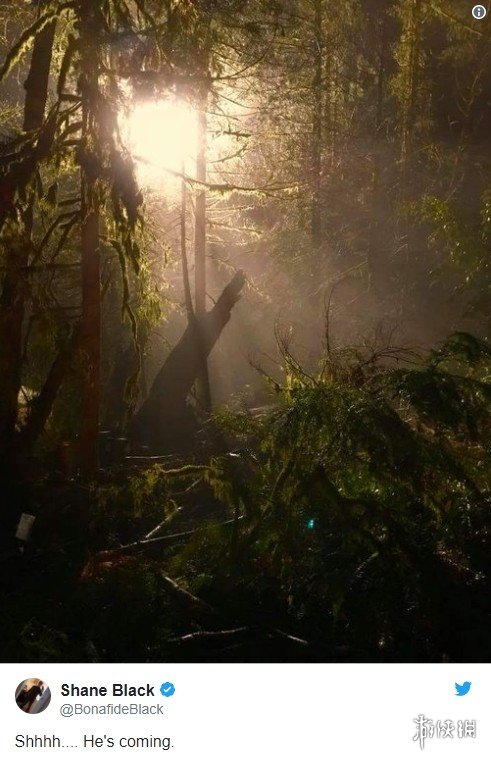 剧照展示了一片类似南美洲的丛林地带,不由得让人回忆起初代《铁血战士》所在的场景。而导演沙恩·布莱克在推特上写道:“嘘……他来了。”很明显是在表示铁血战士将至,即将开始新的猎杀。