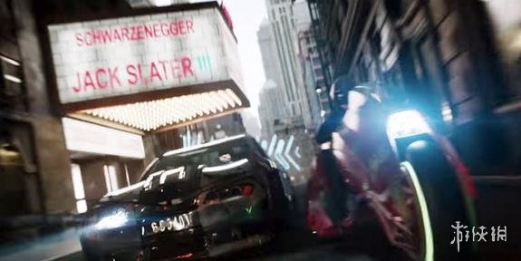 追车戏路过的影院正在放映施瓦辛格的动作电影《幻影英雄》,Jack Slater就是影片中的角色名。
