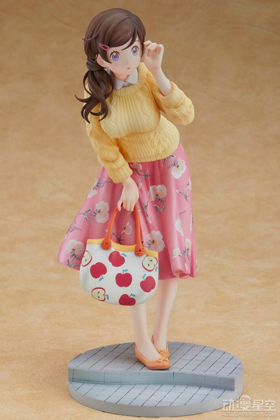 手办造型上,设计者突出了明里姐姐的邻家女孩气质,明黄色的毛衣和花纹长裙非常具有春天的气息。此外,明里的侧马尾发型、可爱的表情、毛衣下挺拔的胸部和手中的提包也制作得非常精致,淡雅的涂装配色令人神清气爽。
