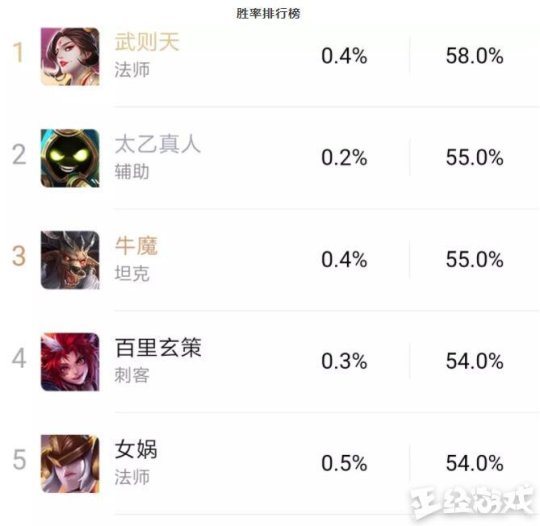 3月的胜率排行榜公布 武则天领衔