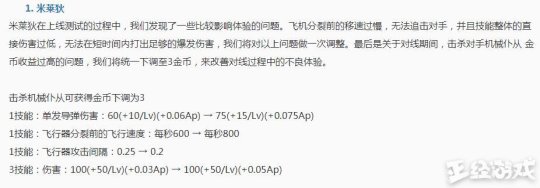 在4月1日的体验服更新中,众多英雄的技能发生改动。受到加强的英雄包括有孙尚香、鲁班七号、狂铁。其中张良在4月1日的改动中得到加强,但是在4月4日的更新中2技能伤害太高,数值又回调了。不过米莱狄在4月4日的更新中,得到一定的加强。