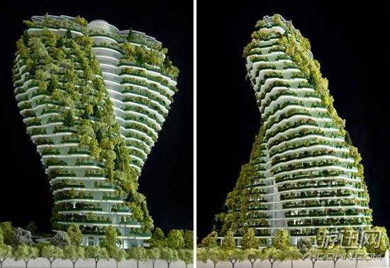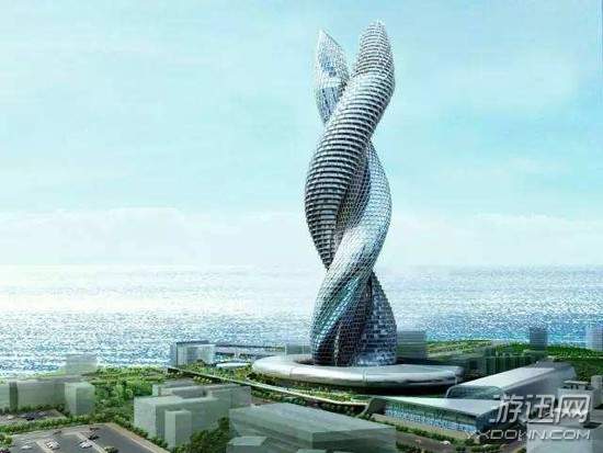 这座盘旋式摩天大楼是由Tafline Laylin设计的,既像两只交叉在一起双手,又神似DNA的螺旋结构。设计团队称建筑的中心部位为“悬浮花园”。