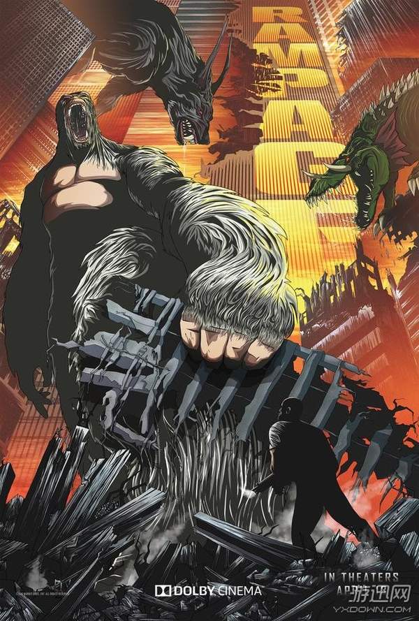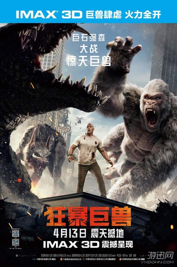 《狂暴巨兽》改编自80年代街机游戏,讲述了猩猩、鳄鱼和狼意外受到辐射变异成为惊天巨兽,肆虐成灾,硬汉强森对战三大怪兽并拯救世界的故事。影片将于4月13日在中国内地与北美同步上映,并登陆国内杜比影院。