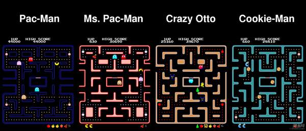 吃豆人还有四个经典的敌人,这四个小鬼魂有四种颜色,分别是红色、粉色、蓝色和橙色,这让游戏更加的丰富多彩。