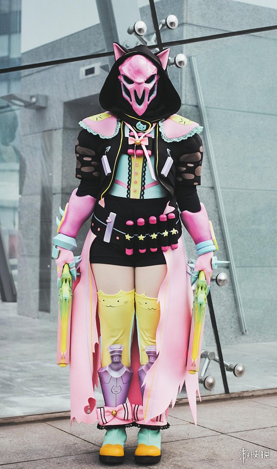 这个瑞破长靴、丝袜、猫耳,一身卡哇伊打扮,给人一种非常娘的感觉,似乎专为女性Coser准备。最让人惊讶的是,这个死神竟然还有条粉色的尾巴,骚气逼人!