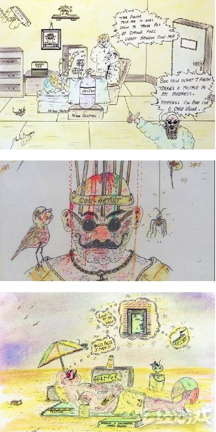 就是这样一个暴脾气的罪犯,他的业余爱好居然是画画和写作。最喜欢以他自己为主角,画犯人被各种奇葩严刑拷打的画面。当然这个暴力男人还有暖心的一面,他把自己赚的钱都捐给了患病儿童,作为他们的治疗基金,因此在英国还有不少人呼吁政府还这位暴躁老哥自由。