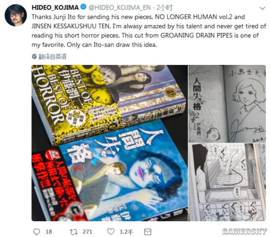 小岛秀夫表示自己对伊藤润二的才华感到惊讶,读他的短篇恐怖漫画从来不会感到厌倦。