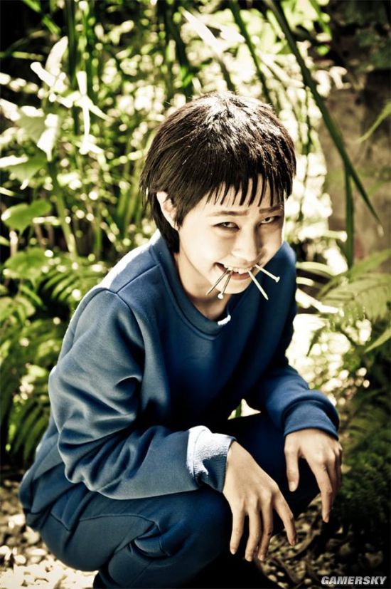 他口含长钉,黑眼圈妆容十分到位,最重要的是他邪魅的眼神完美地还原了喜欢恶作剧的双一应有的神韵,在街边看到这样的孩子,或许真的会让人吓一跳。
