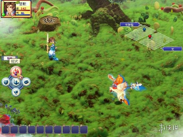 右上角这个比较特别的图形实际上就是当时《幻想三国志》的一个特别系统,即阵型系统,在游戏中玩家可以组成不同的阵型以获得不同的buff和能力,笔者记得小时候最爱用的就是长蛇阵。