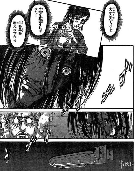 愤怒的加比射死一名调查兵,并且不顾法尔可的阻挠爬上了飞船,并且射中了萨沙。