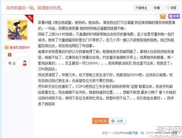 早前笑笑离婚的事情很多人都非常可惜,很多人都觉得这女的非常不容易,但随着今早一些聊天记录的曝出,让我们知道了这事情并不简单,就在刚刚,笑笑在贴吧做出了最后回应: