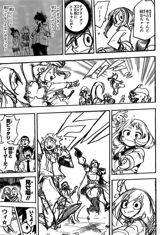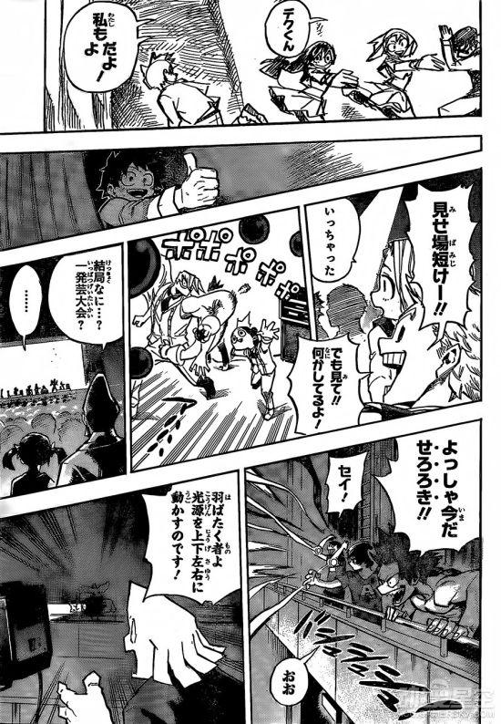 根据《我的英雄学院》漫画第182话图透,本话里A班的成员们展示出欢乐开心的演出剧情,大家其乐融融。可与故事风格形成明显对比的是,这一话有几页的作画竟直接采用了草稿图,前后对比起来更能突出成品与草稿的差距。