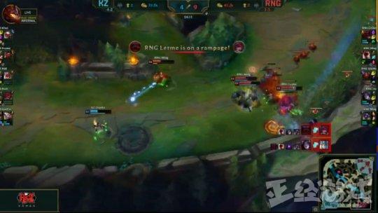 开局,KZ和首次交锋一样,选择针对香锅的打野,三人包蓝区,麻辣香锅的盲僧祭出一血。紧接着男枪加里奥二人再包香锅,盲僧再送一血,打野节奏受到严重破坏,男枪取得巨大优势,横行RNG野区。
