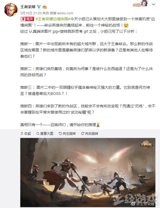 昨日晚,王者荣耀官方微博放出两张海报,预示王者荣耀即将推出一个新的模式,王者荣耀的策划在微博上也暗示新的玩法即将上线。“边境突围”,了解一下?