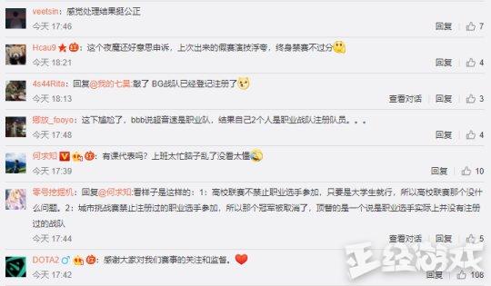 就在当天下午五点半,完美官方也针对了这篇微博提出的问题和其他的质疑都一并作出了一系列的解释,首先是关于职业选手问题。官方经查证后发现广州站的Team Time战队和成都站中BBB战队(也就是博主战队)都包含职业选手,所以取消冠军成绩奖励顺延。