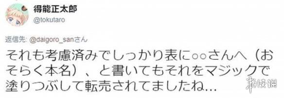 推文发出后,网友们一边为得能正太郎老师加油打气,一边也给他很多建议,比如在签名板写上对方的名字和住址是不是会好一点,可魔高一丈的转卖商早就料想到这个做法,得能正太郎回复表示有人“把图上的名字涂掉,然后将它转卖了”。