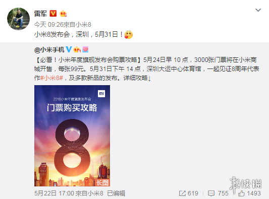 日前,小米手机官方正式发布预告海报,新品发布会敲定于5月31日在深圳举办。而此次发布将采取售票方式面对大众开放。今日上午十点,3000张门票在小米商城开售,每张售价99元。