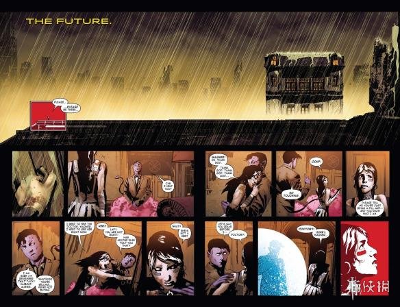 据悉,变种人Eva Bell穿越的这个场景复制了《全新X战警》的画面,Eva Bell穿越,来到了2099年会晤了全新X战警,还碰到了至尊法师秘客,Eva Bell在此结婚生女,然后返回原来的时空,等到其再次来到2099年看到了钢铁侠成为了新一代至尊法师。