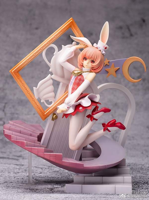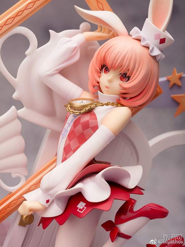 与《爱丽丝梦游仙境》原版故事不同,那只总是在赶时间的兔子先生在制作者的手下变成了可爱的兔女郎,短裙和白丝的搭配令人眼前一亮。此外,手办附带的底座也充分还原了故事设定,通往异世界的门扉、回廊楼梯和白兔胸前的钟表都被刻画得非常细致。