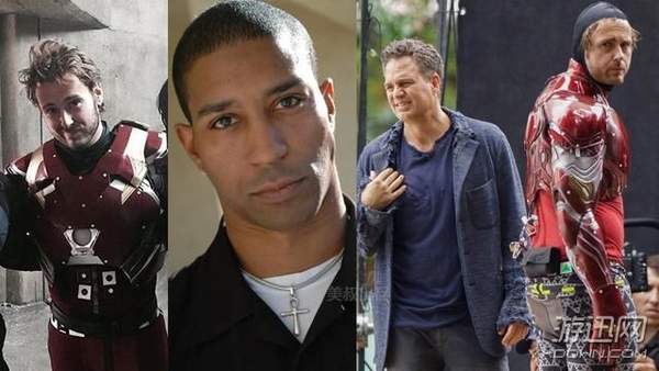 想必大家都知道,唐尼在拍摄的时候几乎不穿战甲,所有的镜头几乎都是特效以及替身。钢铁侠的替身找到了两位,其中一位名叫克莱·方特诺(Clay Fontenot,图中间那位),这位与《战狼2》是真的有关系,他在电影中出演了一名海盗。不过没找到他作为钢铁侠替身时的照片。另一位替身则穿着钢铁侠的战袍,而且从照片中可以看出这是在《美国队长3》当中的造型,这位替身演员的名字叫詹姆斯·杨,具体的介绍看下面的文章,因为他主要是为冬兵做替身,不过好像最右侧的那张《复仇者联盟3》现场照片中也是他。