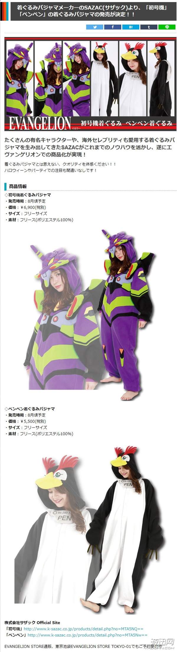 这两款《EVA》睡衣将于2018年8月发售,初号机睡衣售价为6900日元(约为人民币403元),企鹅PENPEN睡衣为5500日元(约为人民币321元),如此有效果的睡衣大家不打算买来试试吗?