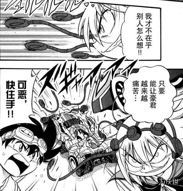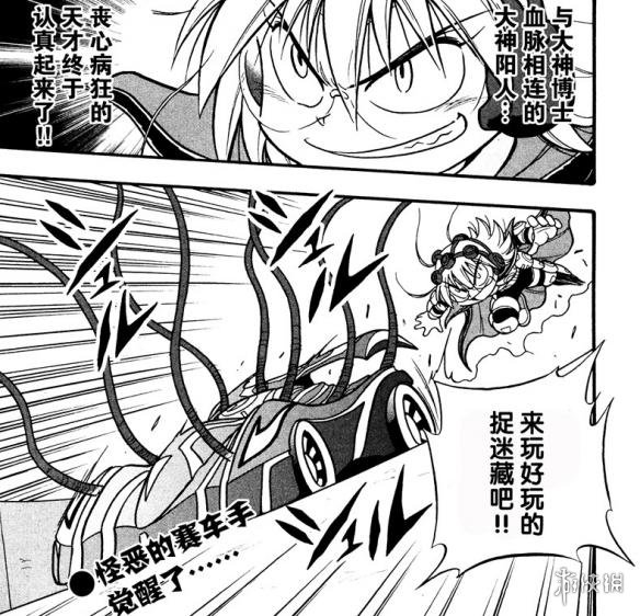 大神博士的儿子阳人发挥出丧心病狂的天才技术,将赛车改造成破坏机器,对小豪的新车进行残忍攻击。比赛过程中,阳人的车子竟然伸出数条“触手”,每天触手尾端都有一个轮胎,车子凭借这些辅助轮在赛道上肆意驰骋,一下子就拉近了与小豪的差距。