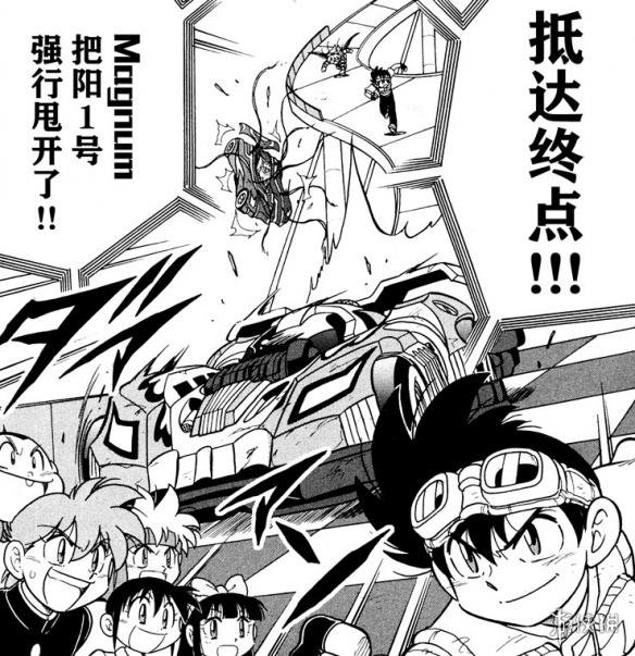 小豪当然不会放弃。他利用喷射装置强行扭转掉落轨迹,重新回到跑道上。随后,小豪发动了引以为傲的“冲锋号龙卷风”必杀技,不仅甩开了如同寄生虫一样的阳人车子,还顺利抵达终点,赢得比赛冠军。