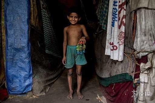 在每个成年人每月收入31美元的印度家庭中,他拿着他最喜欢的玩具。