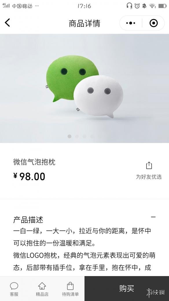 在微信小程序中搜索“WeStore微主页”,就可以找到微信官方周边商店。在商店中可以看到微信周边商品风格都比较可爱,比如微信气泡抱枕、红包抱枕、微信黄脸系列T恤等。