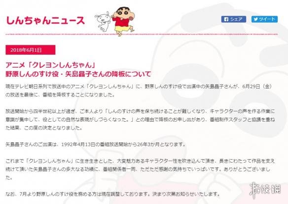 矢岛晶子从1992年4月13日《蜡笔小新》动画播出之始,直至6月29日谢幕,为小新配音长达26年3个月。这26年间,她的声音让小新可爱的形象深入人心,伴随了数代人的童年。