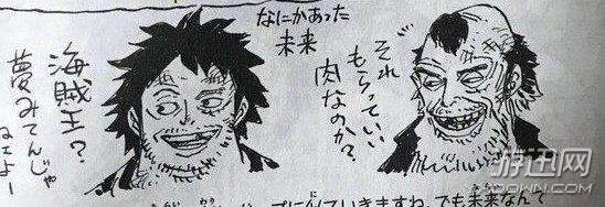 此外,尾田老师还在大叔路飞和艾斯头像下方画出了“另一种未来”的模样,相比帅气的大叔显得猥琐搞笑许多。其中,40岁的路飞变得发福肥胖,至于年轻时的“我要成为海贼王”梦想也被抛在脑后;60岁的路飞更是掉牙秃顶,完全就是漫画里经常可见的流浪汉形象。艾斯则显得富足许多,他的脸型同样胖了一圈,并且从台词和衣着来看此时的艾斯已经变成了四处借钱的小市民,又一条失去梦想的咸鱼诞生了……