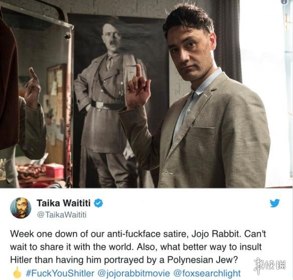 近日,《雷神3》导演塔伊加·维迪提执导并参演的新片《乔乔兔》正式开拍。今天,他在Ins上分享了自己希特勒造型的片场照,对着希特勒照片比着中指,配文:“还有比波利尼西亚犹太人扮演希特勒更佳的羞辱方式吗?” 一起来看看吧!
