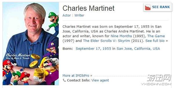 近日,《无敌破坏王2》的IMDb演员列表中出现了一位重量级大咖:《马里奥》系列英文版游戏中为马里奥和路易吉的御用配音Charles Martinet。据页面上的介绍,老爷子在片中依然是为马里奥配音。