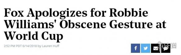 众多在电视前观看世界杯开幕式的球迷都看到了罗比威廉姆斯竖起的中指,对此,负责转播的福克斯体育通过外媒The Hollywood Reporter发布道歉声明:“2018世界杯开幕式是第三方的新闻内容,由FOX负责实况转播,当现场直播时,我们不知道威廉姆斯会在表演中做出什么事情,我们由衷致歉。”