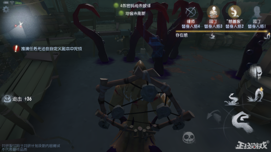 而这时候,你只要配合新的监管者特质“匿迹”躲在远处偷窥求生者们是否踏入触手的攻击范围即可。